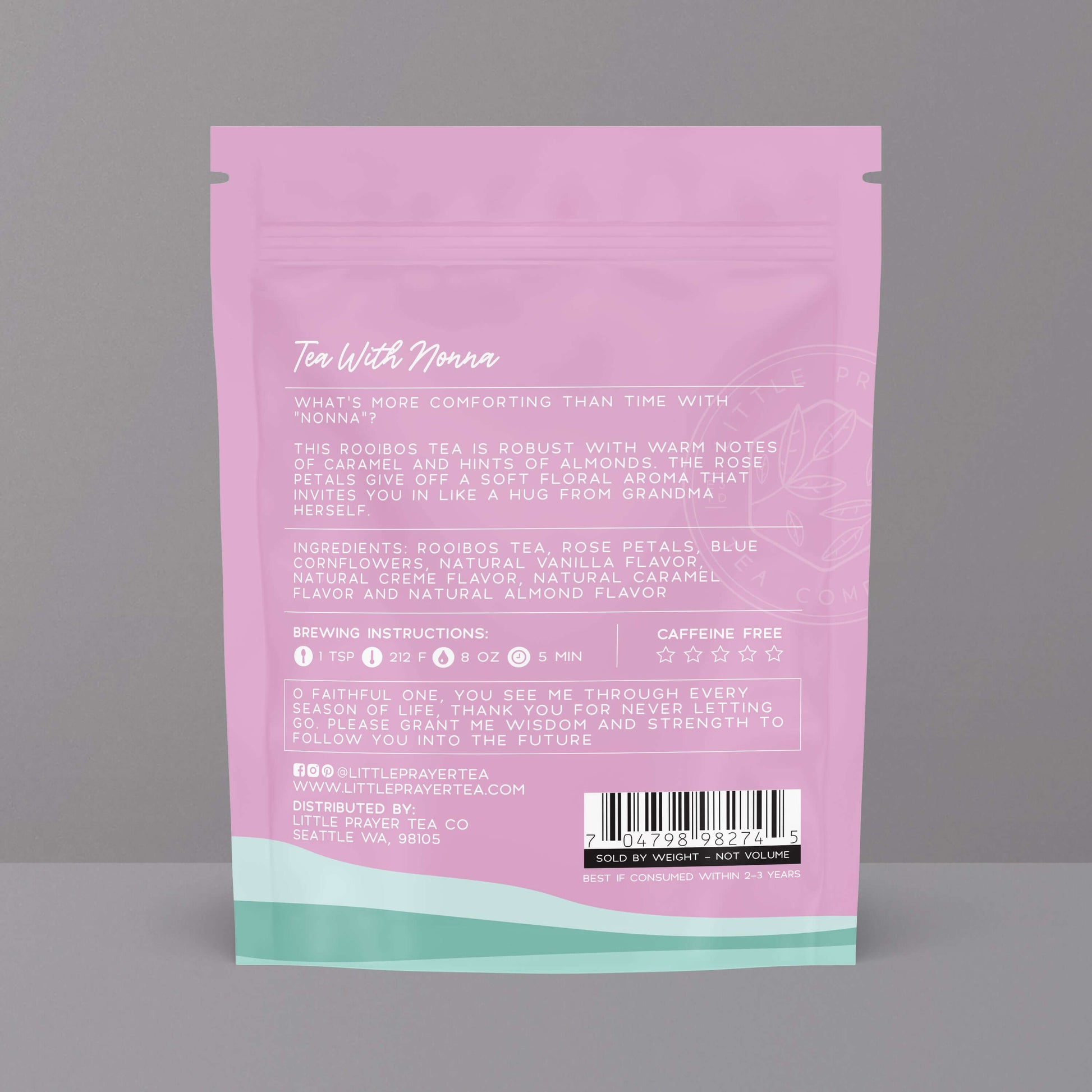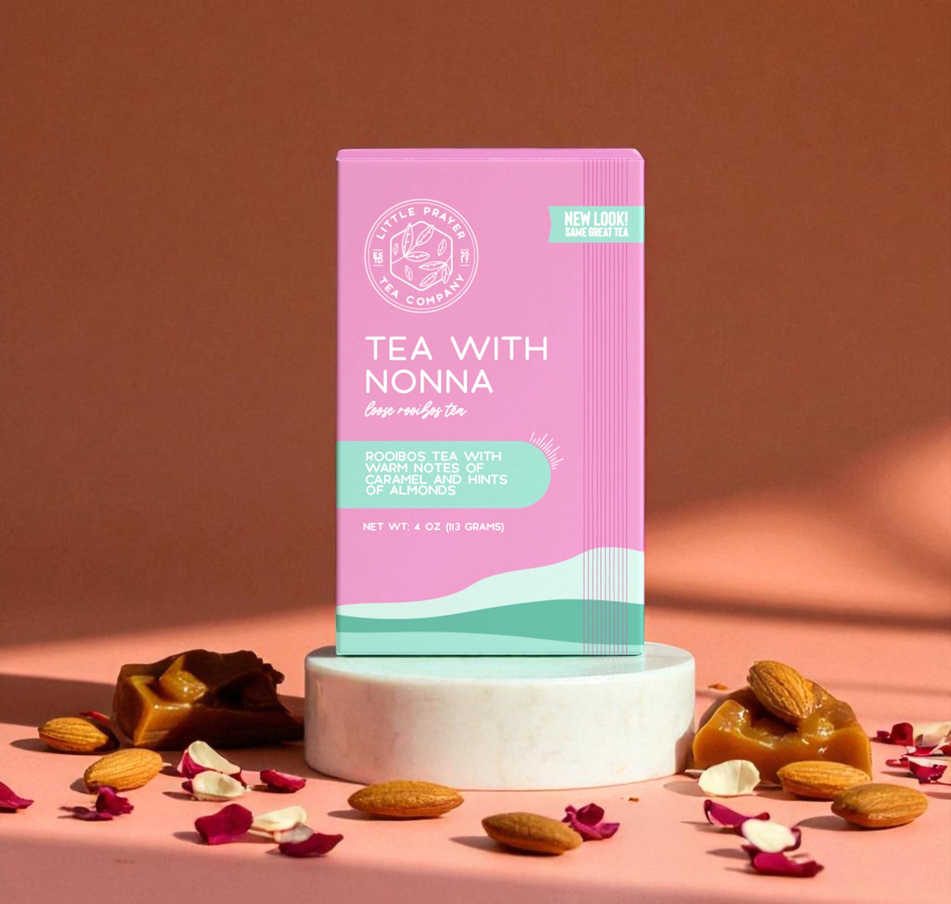 Wrap your hands around a cup of comfort and let your heart rest. Tea With Nonna is our tribute to cozy afternoons, cherished memories, and the quiet strength of unconditional love. Inspired by Psalm 46:1, this caffeine-free rooibos blend is as tender as a hug from your grandmother — warm, sweet, and always just what you need.
