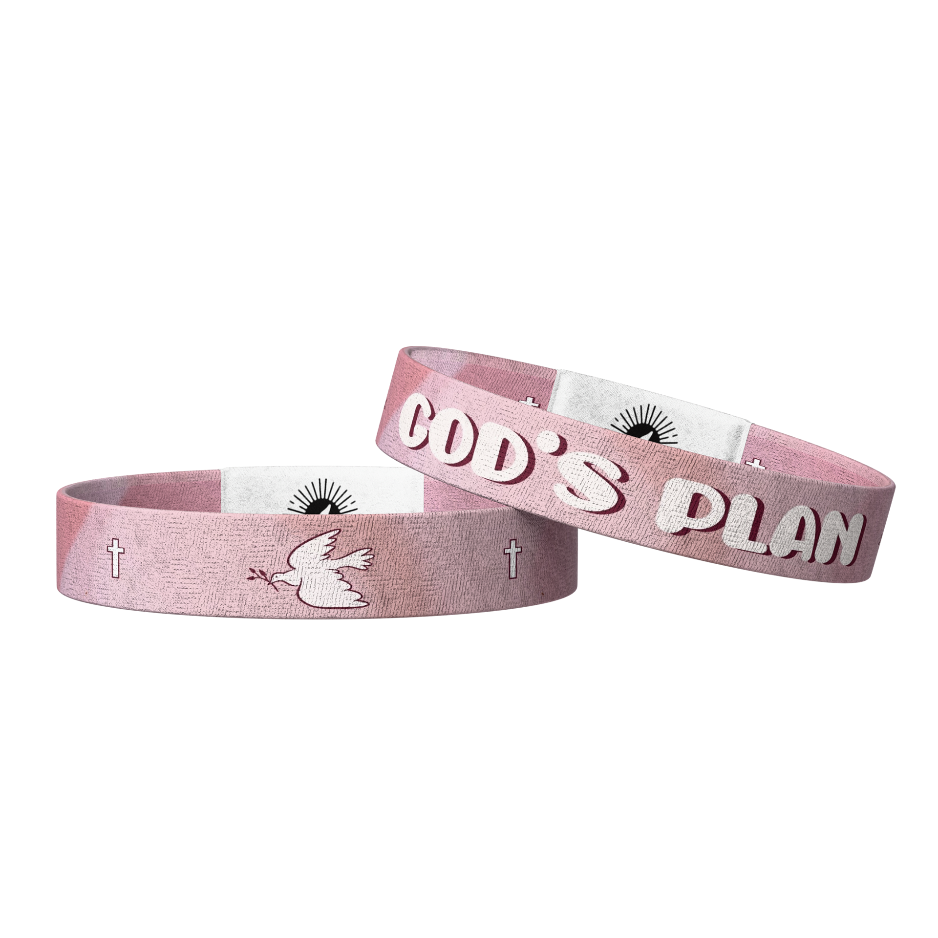One side says “God’s Plan” in bold white lettering. The other side has soft crosses and a dove carrying an olive branch, a symbol of peace and promise. With a quick tap, a verse shows up on your phone right when you need it most.