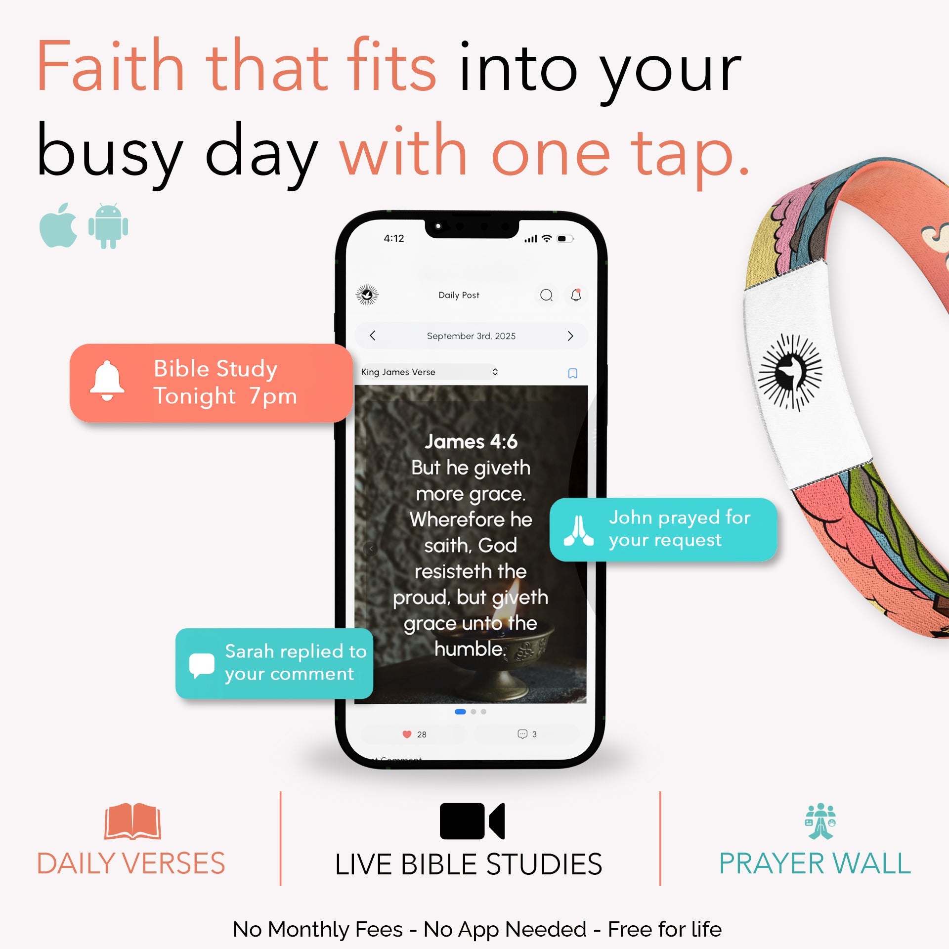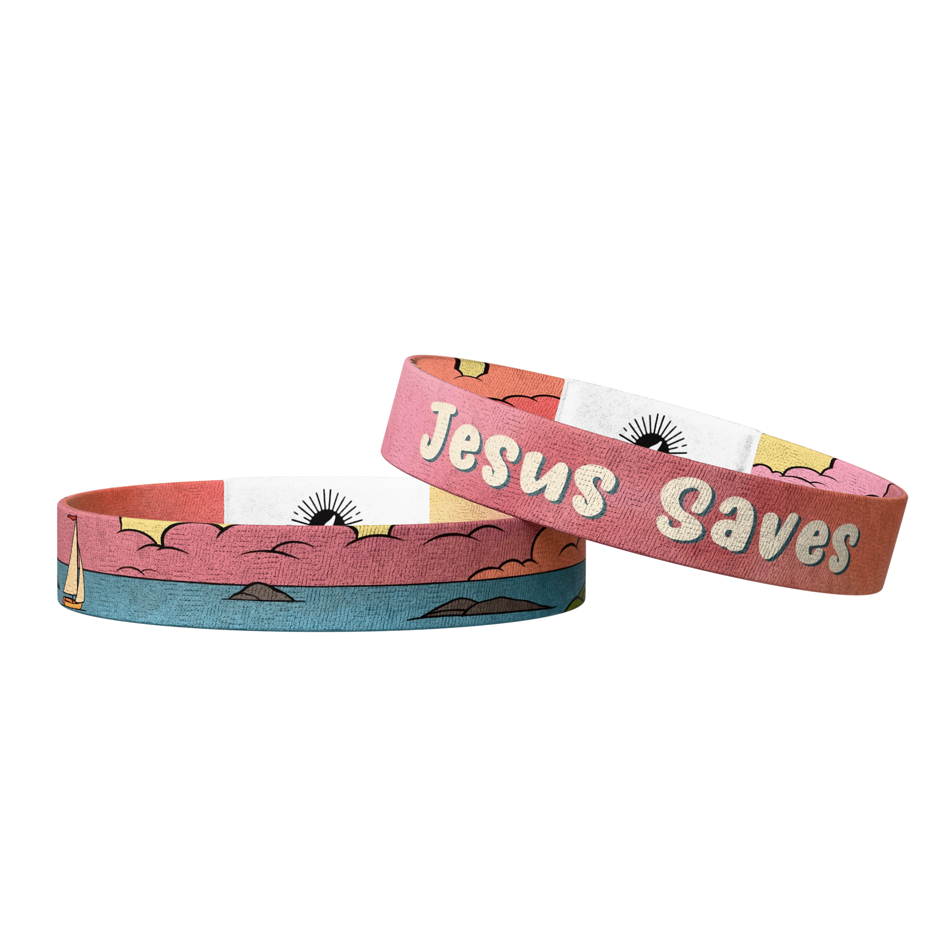 The design is bright and uplifting, with soft sunset tones and ocean waves on one side with a boat heading towards the lighthouse, paired with “Jesus Saves” in bold lettering on the other. It is a fresh, joyful way to carry the message of salvation wherever you go. With just a tap, a verse appears on your phone, encouragement for the moments you need it most.