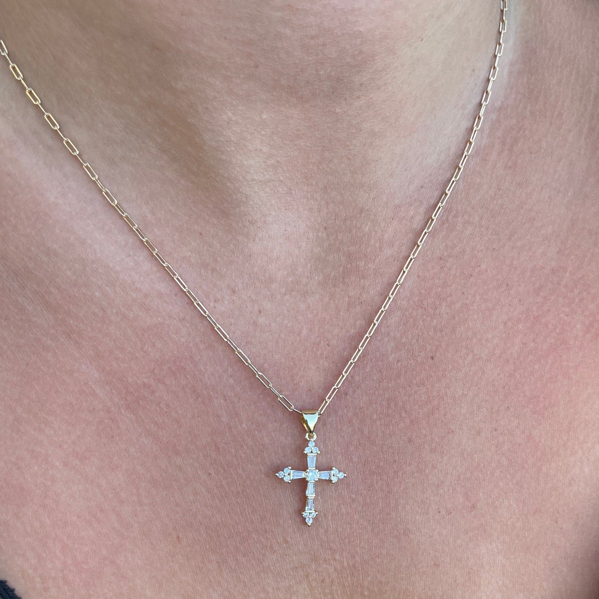 A bestseller reimagined, the Princess Cross Necklace is the mini version of our iconic Queen’s Cross design. Crafted in gleaming gold and accented with brilliant baguette and round-cut stones, this dainty cross pendant radiates timeless elegance. Perfect for layering or wearing solo, it adds a refined touch to any look. A modern heirloom, this piece is destined to be cherished for years to come.