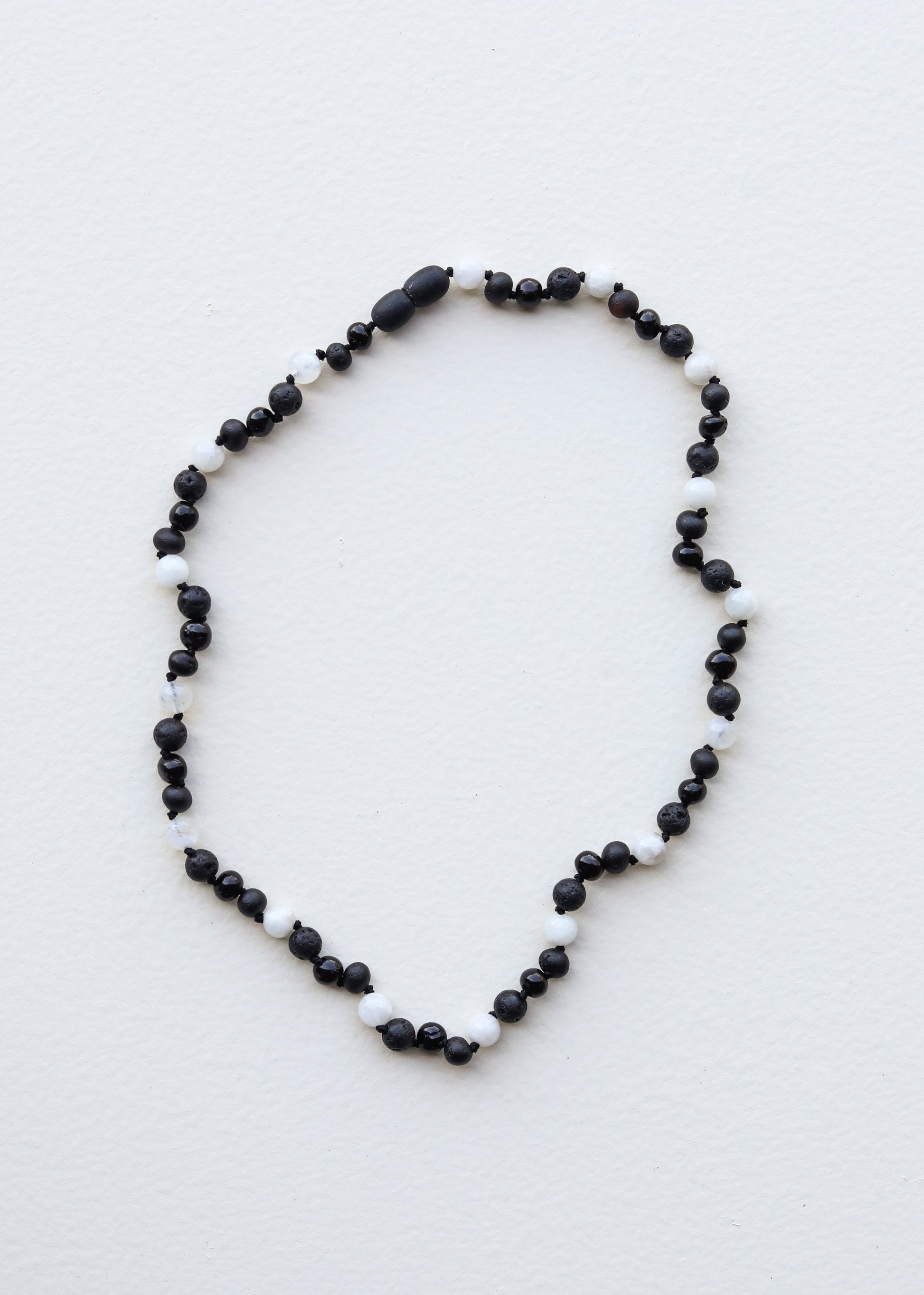 Raw Black Baltic Sea Amber + Moonstone|| Necklace Set