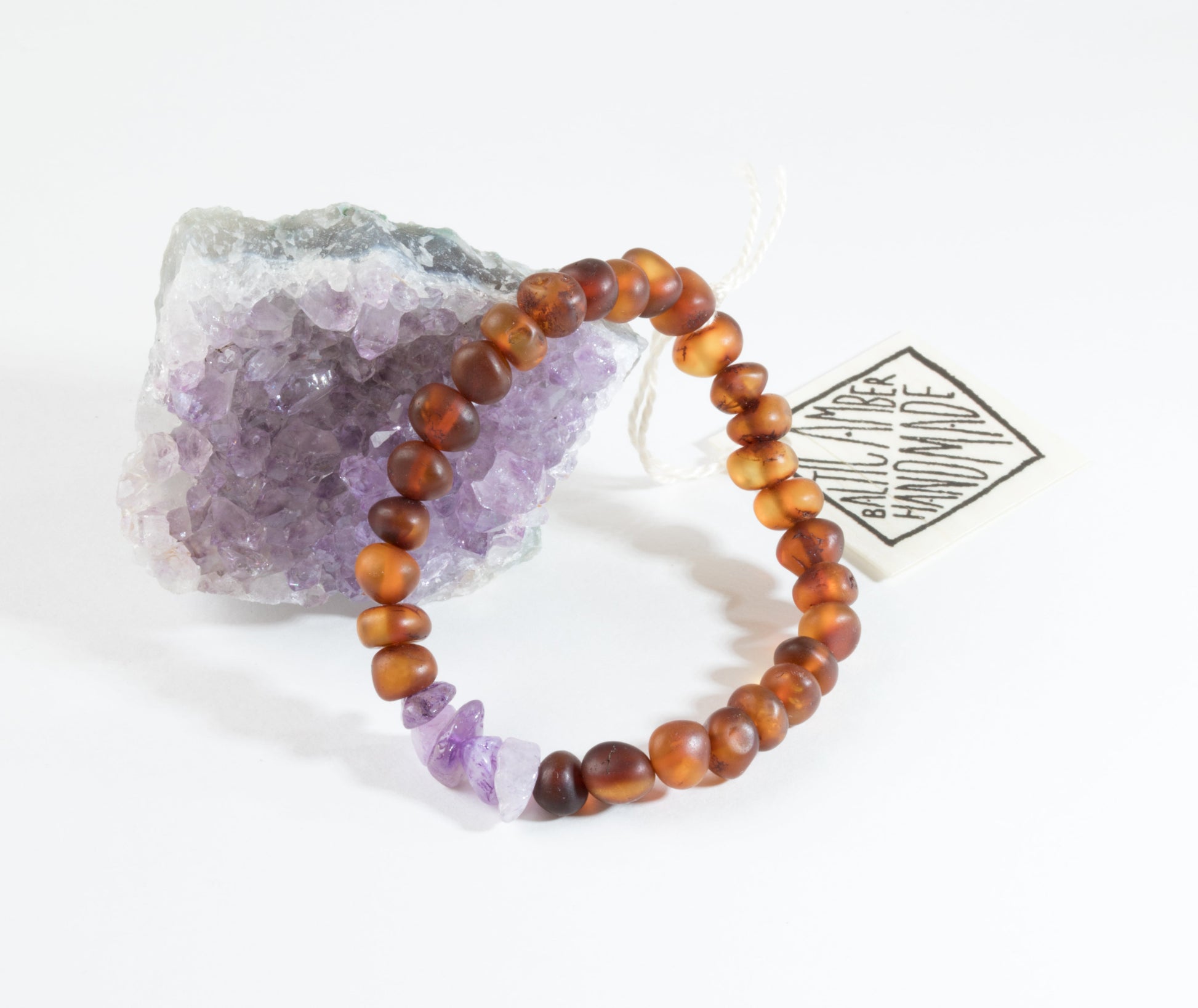Raw Cognac Baltic Amber + Raw Amethyst || Adult Bracelet