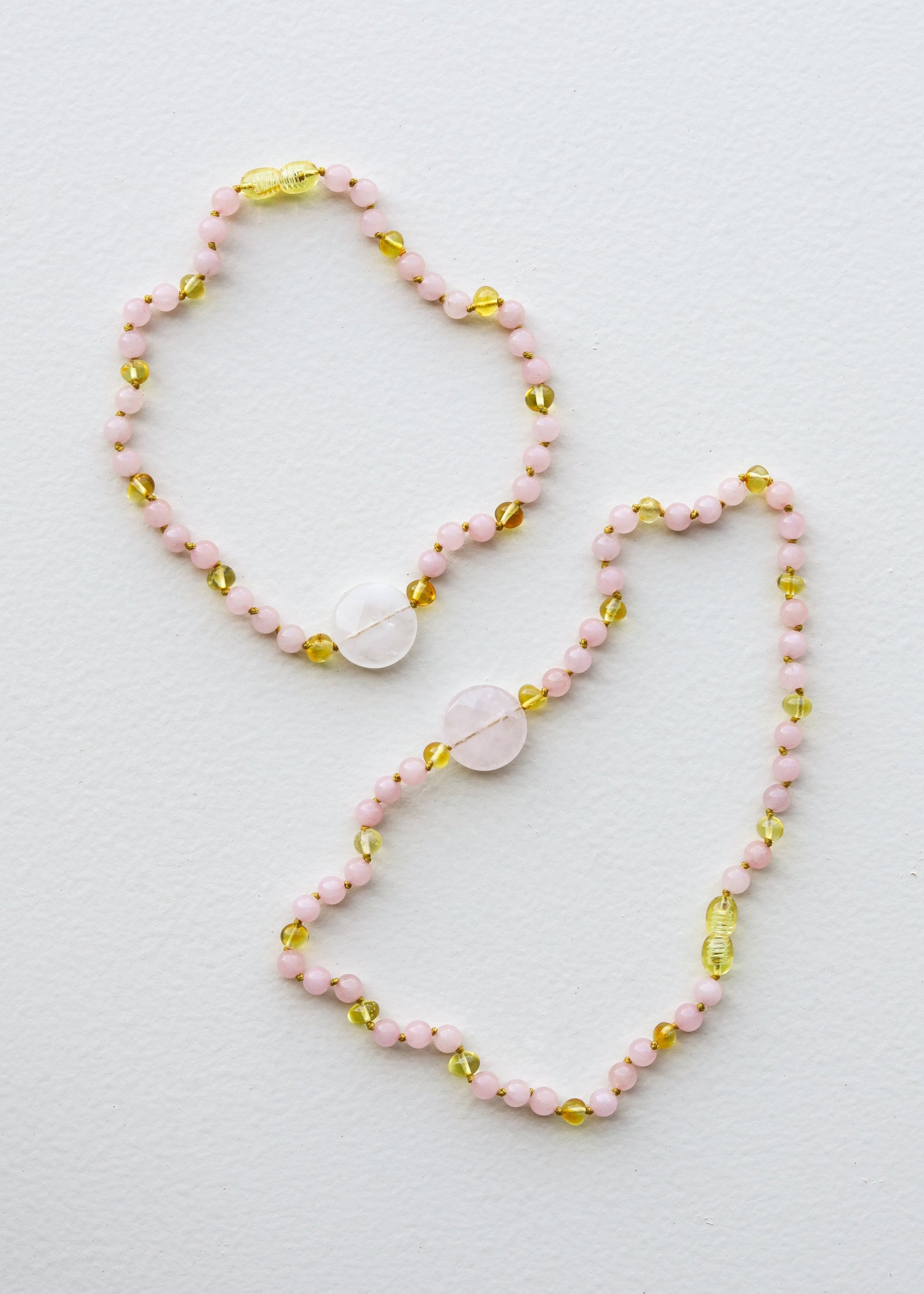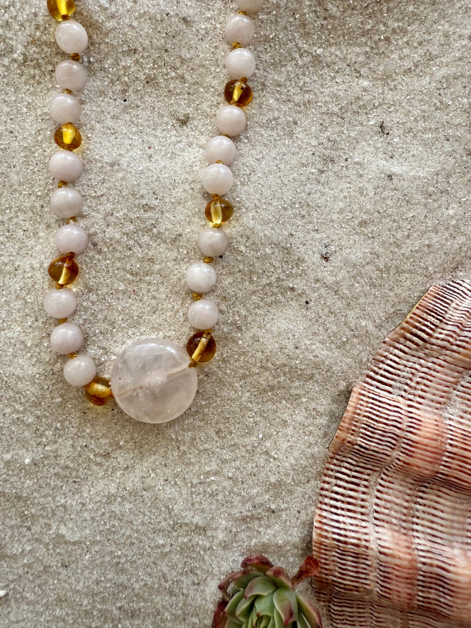 Rose Quartz + Honey Baltic Sea Amber || Rose Quartz Stone Necklace