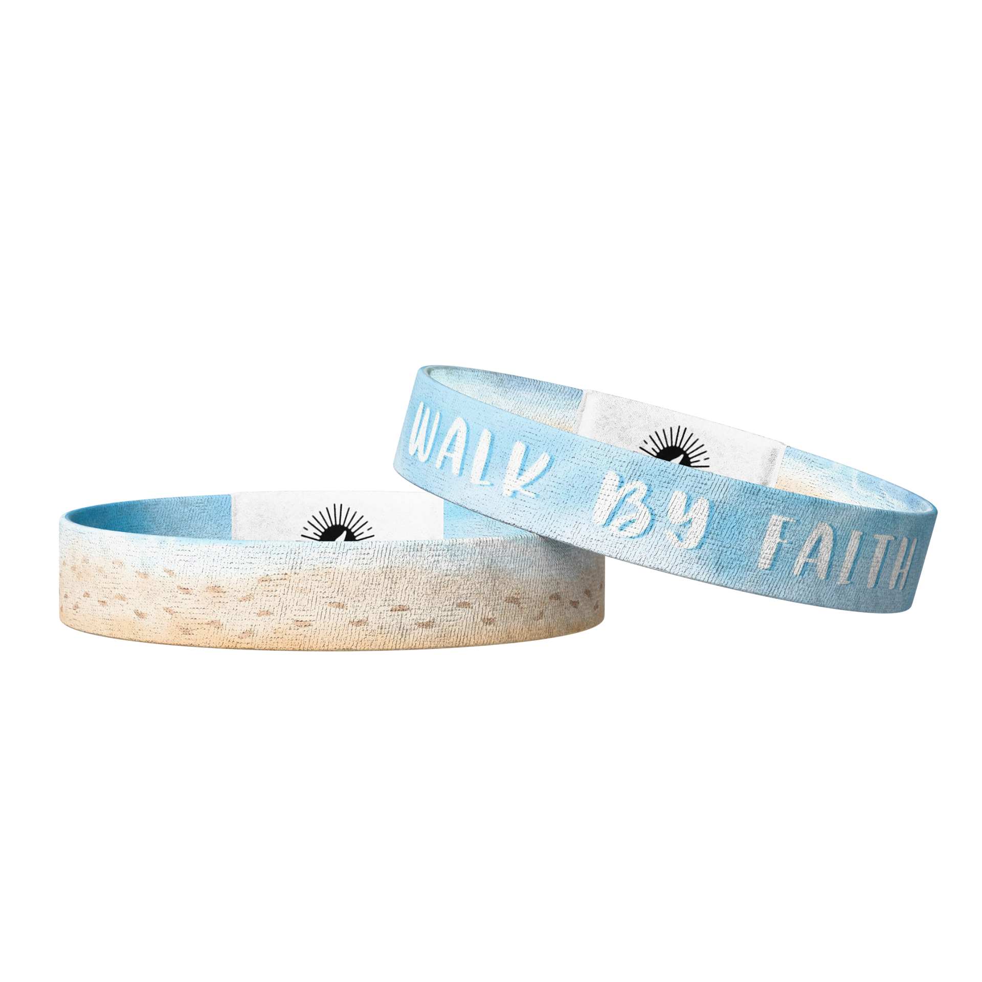The design was inspired by the Footprints poem. One side says “Walk by Faith” on a soft sky-blue background. The other side shows footprints in the sand, a quiet reminder that God is with you every step of the way. With just a tap, a verse shows up on your phone, encouragement for the exact moment you need it.